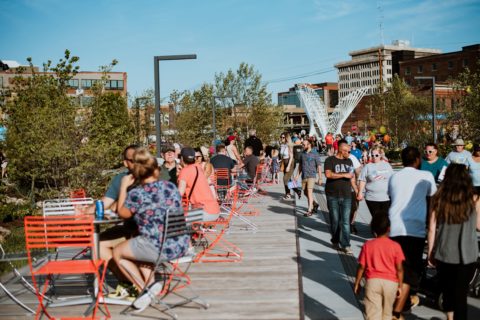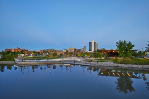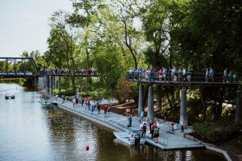 The new park connects downtown Fort Wayne to the riverfront, inviting people of all ages and abilities to come together and enjoy the water and natural life near the city.