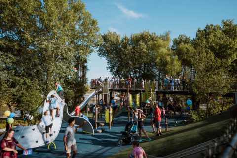 One of the most unique and frequently used features of the park is its Tree Canopy Trail, winding in and out of the trees lining the river. The trail was specially designed so that wheelchairs could easily access it.